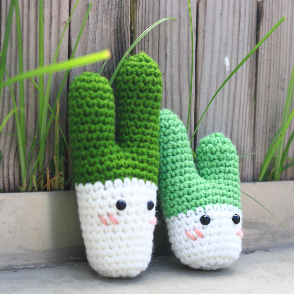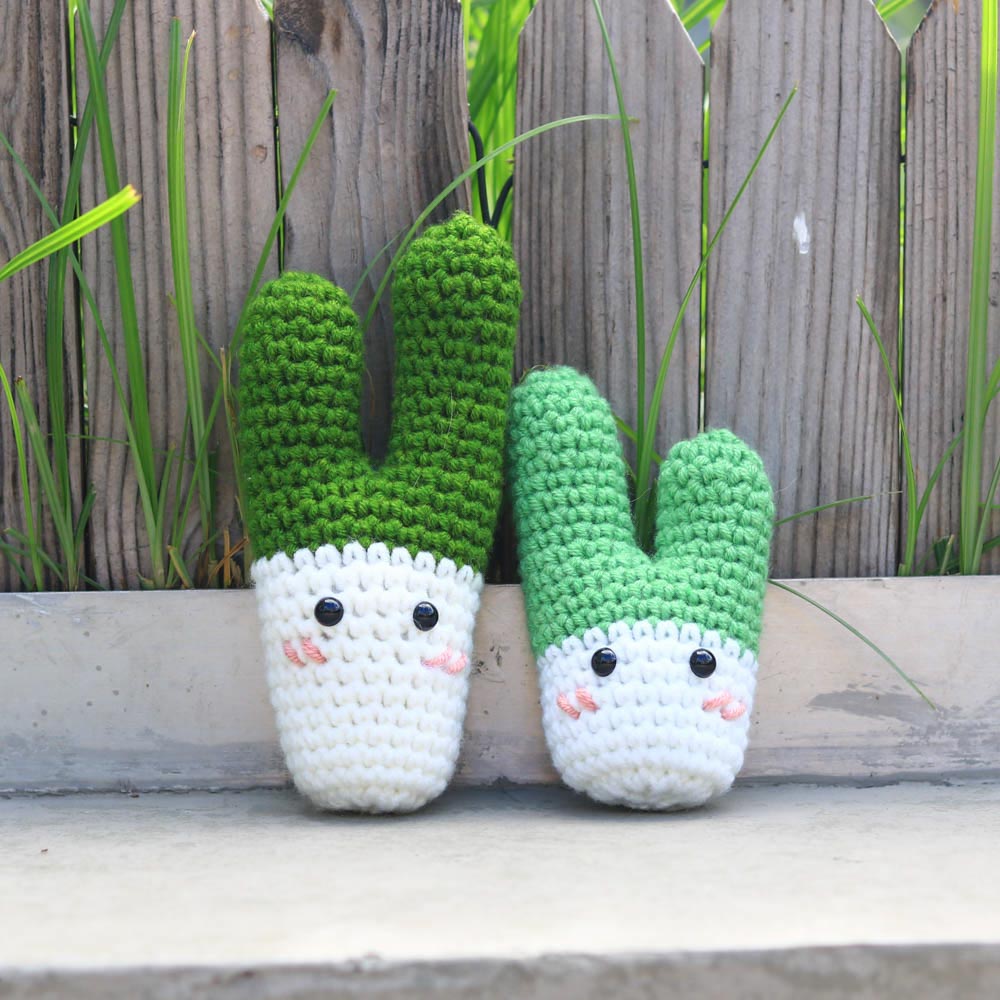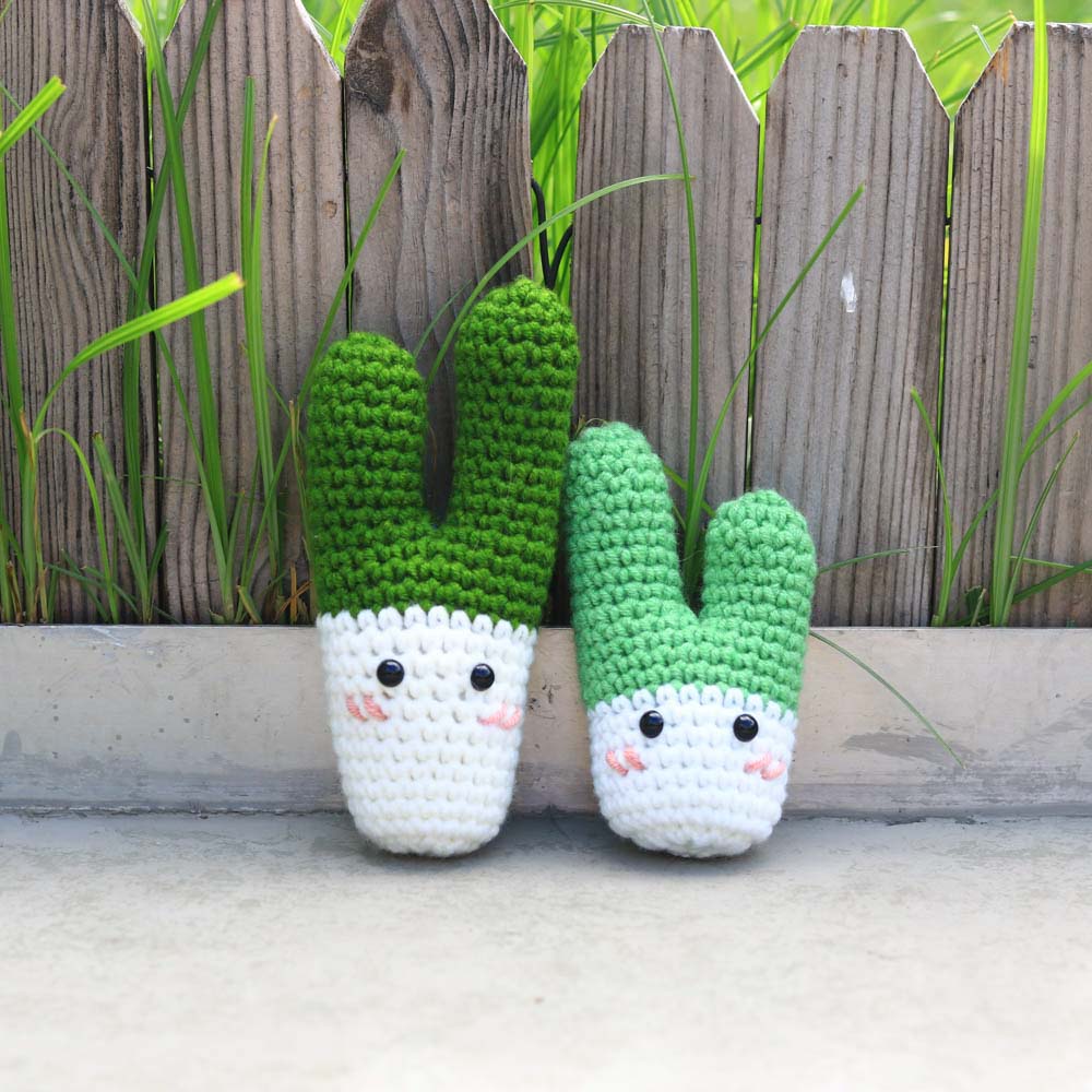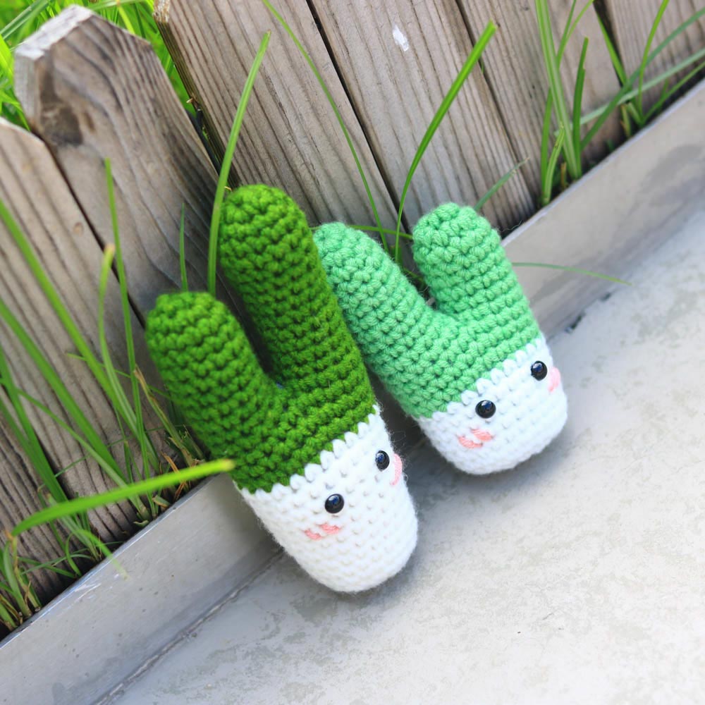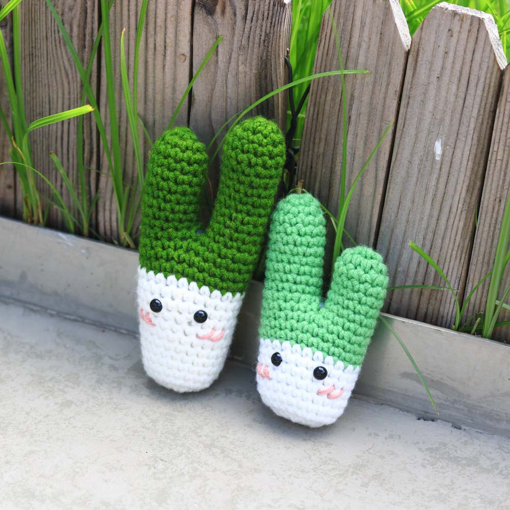 可可愛愛的小玩偶作品,蔥蔥的實際身高可以按喜好調節,借不同的顏色身高塑造不同「角色」,甚至可以鉤出蔥蔥一家呢。