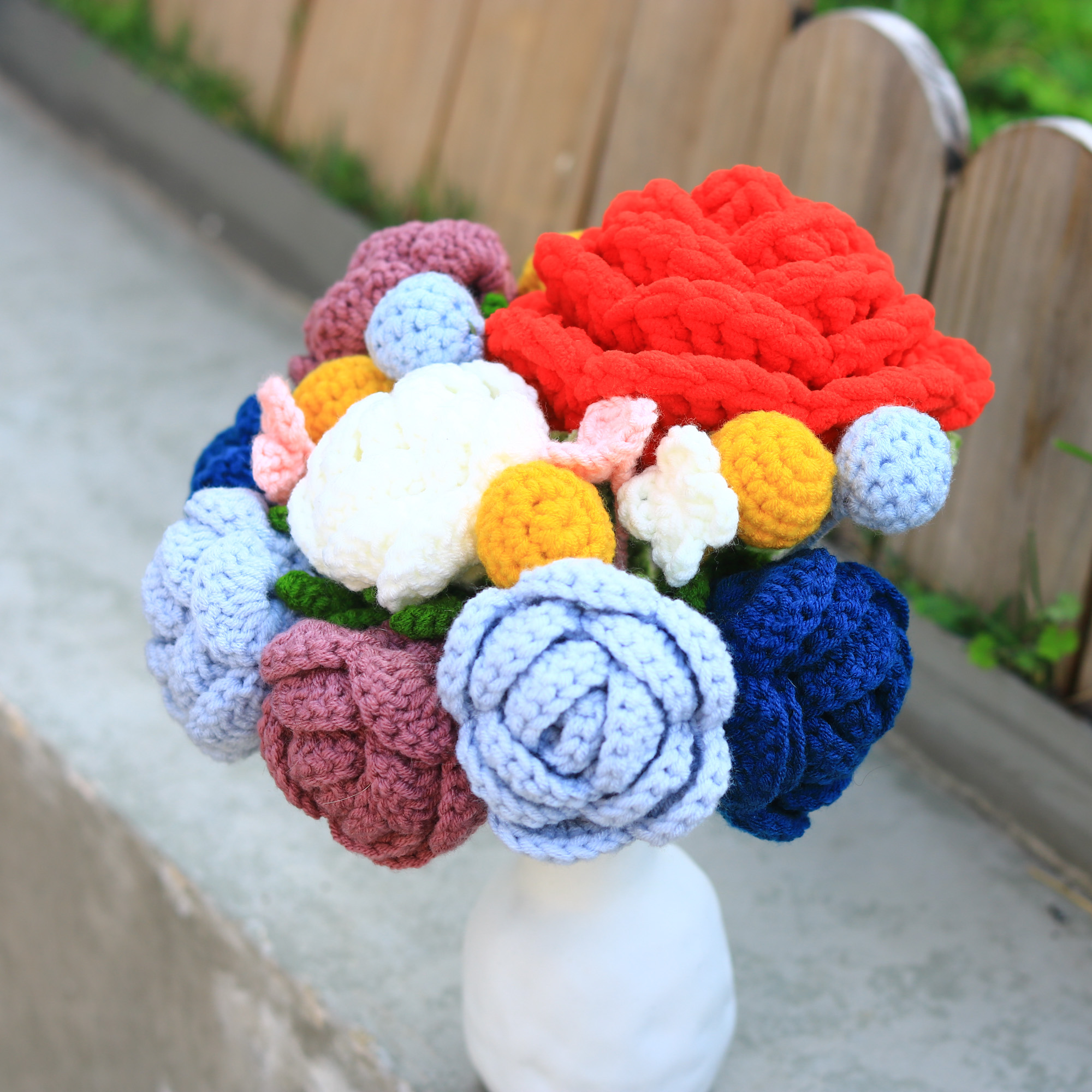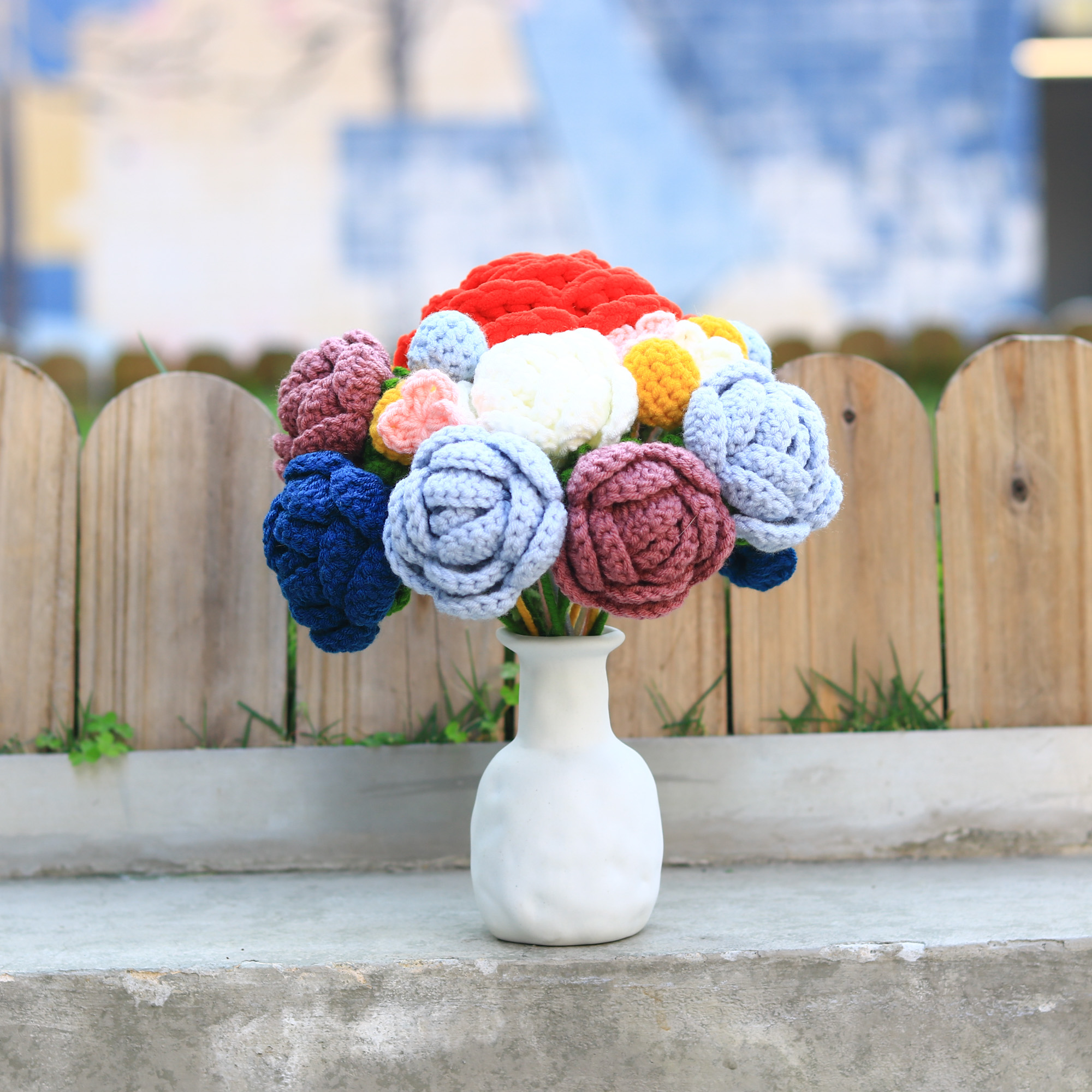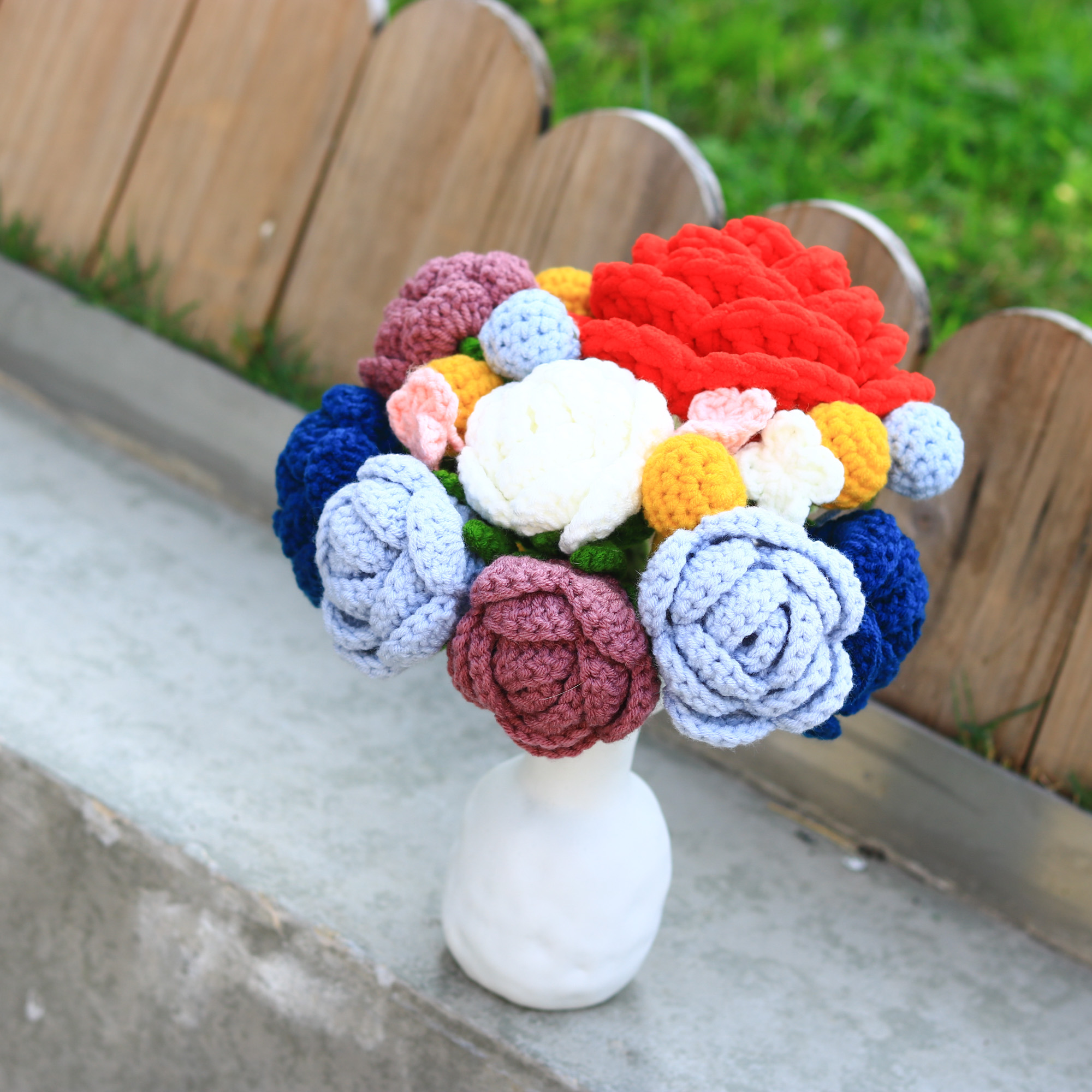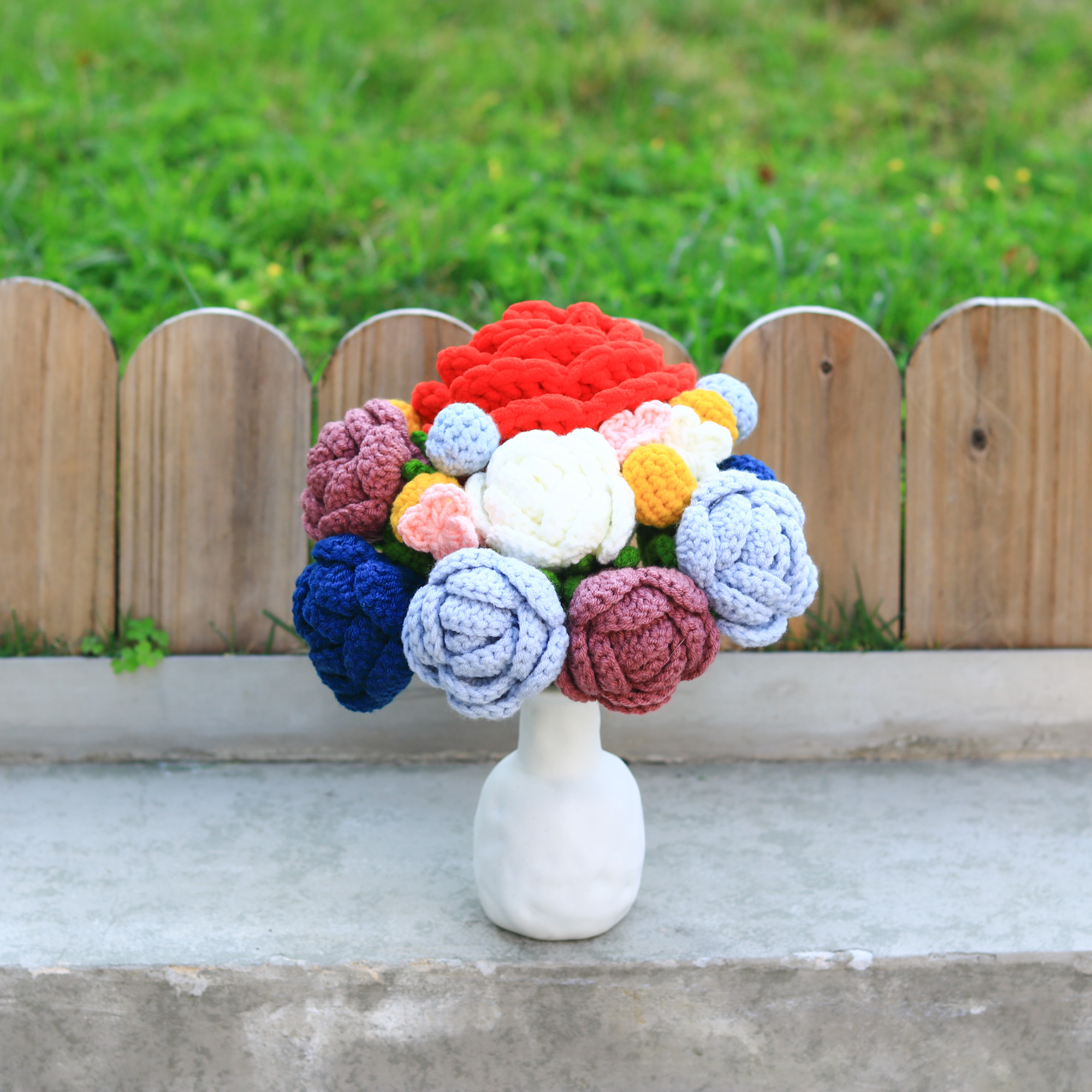 規格/ 五朵薔薇/玫瑰、數朵裝飾小花、蕾絲包布、玻璃瓶
