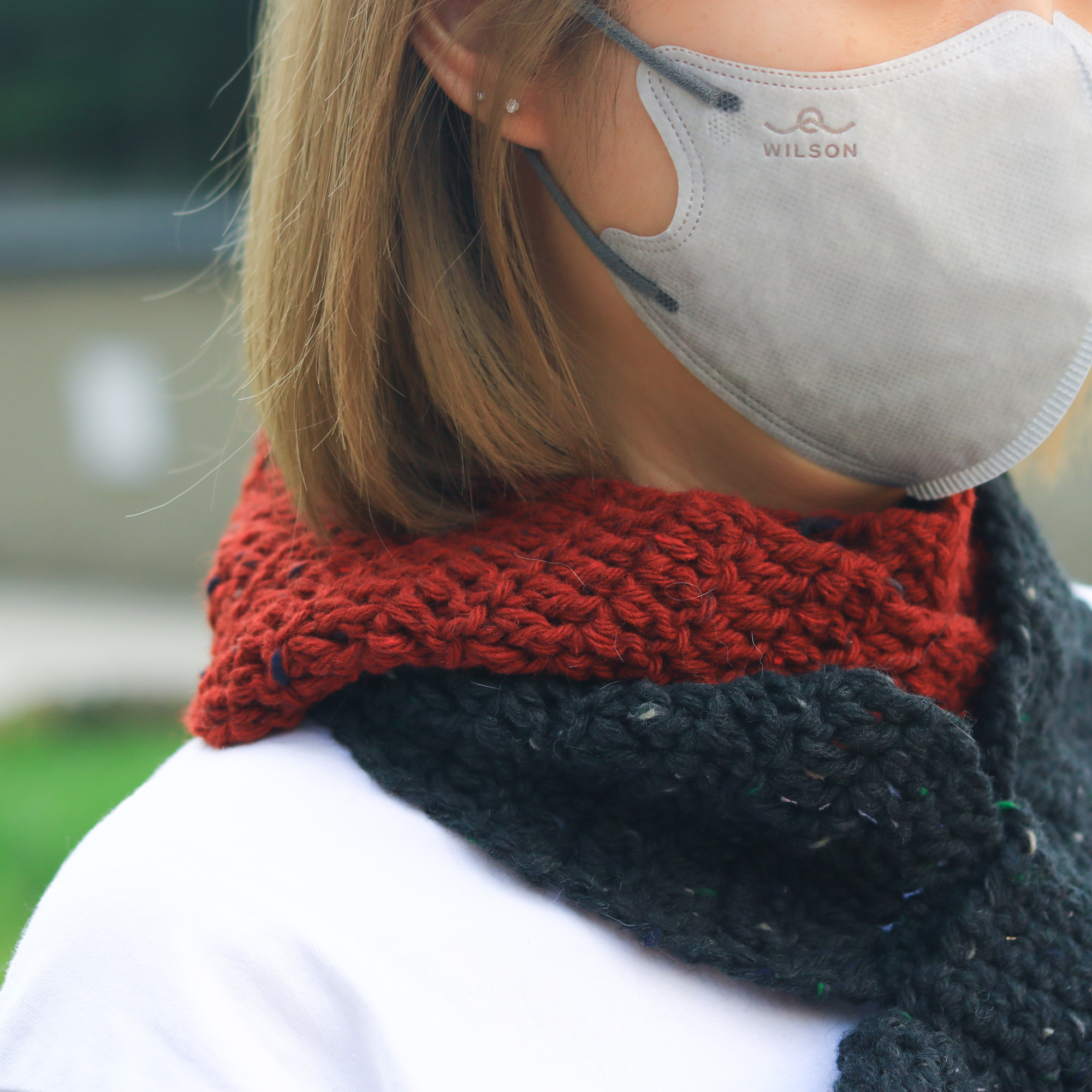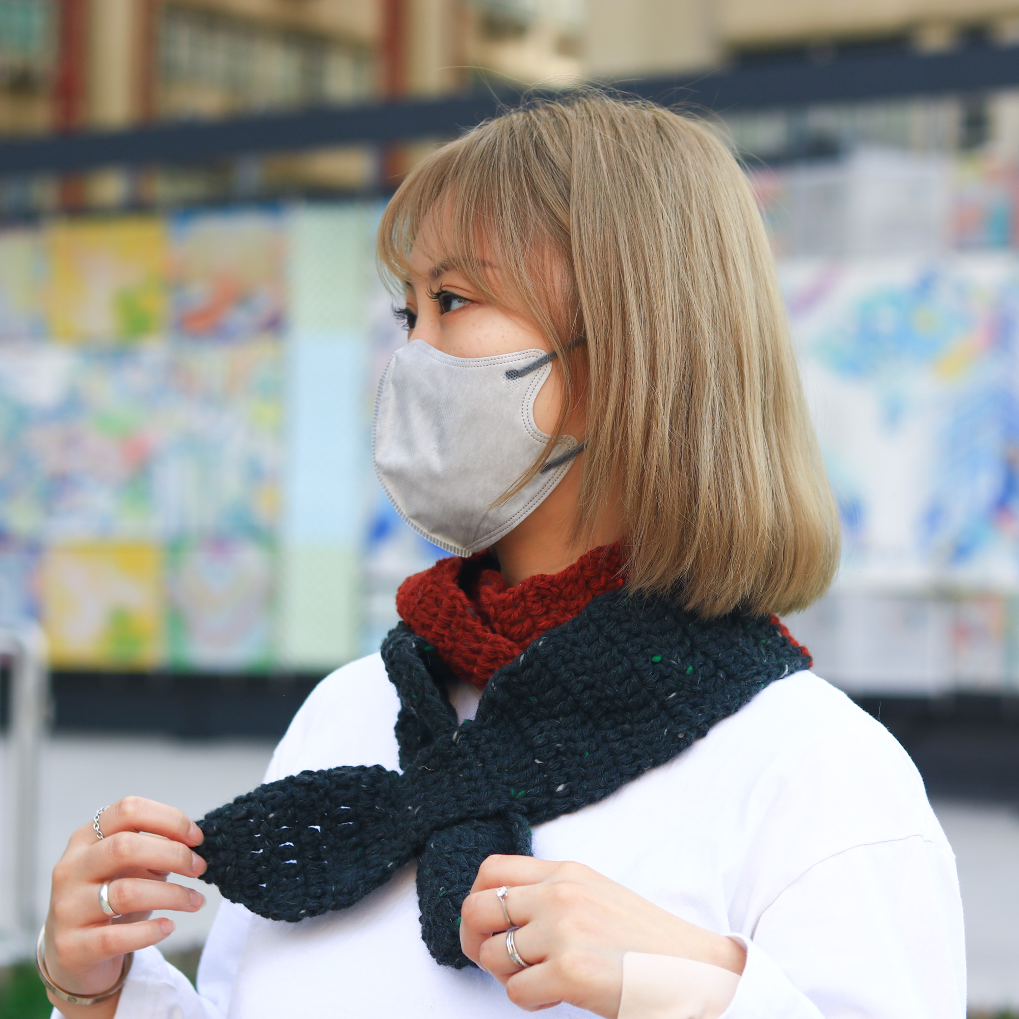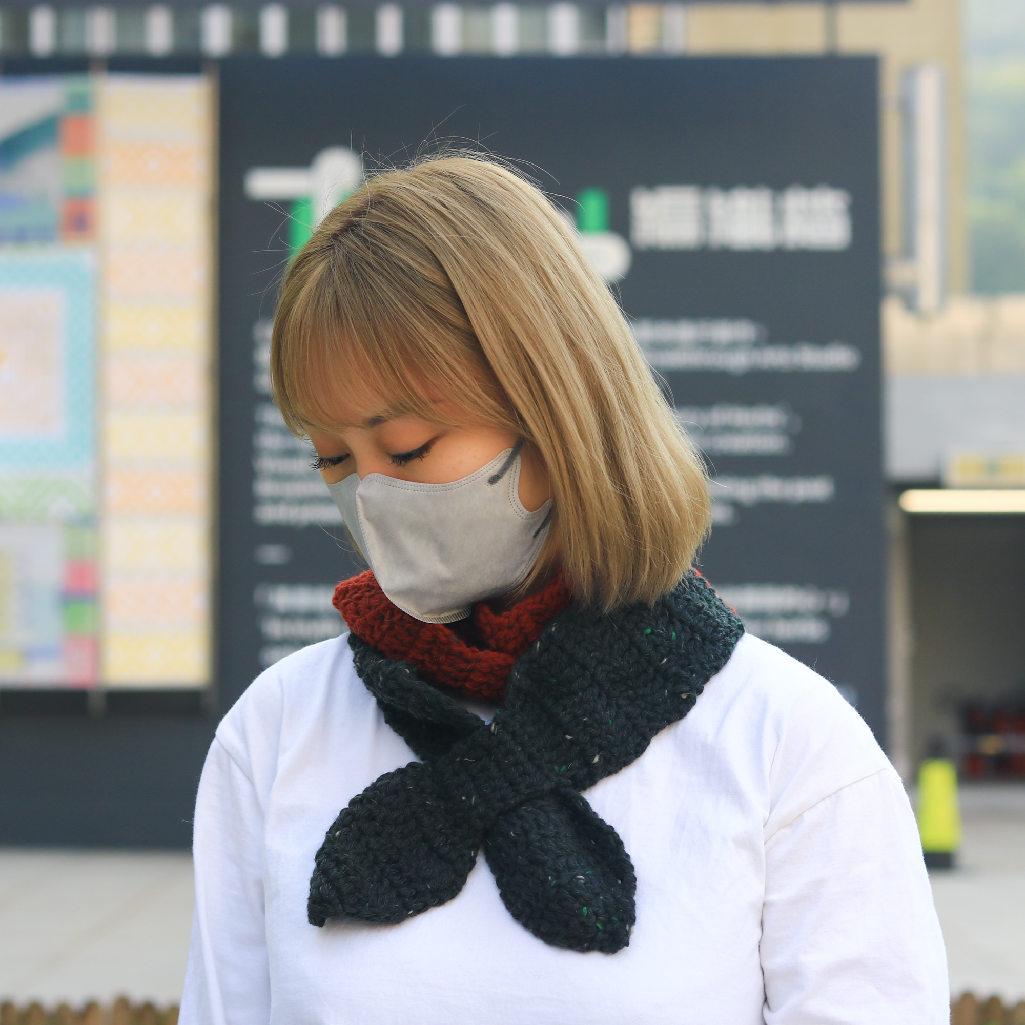 雙色長蝴蝶圍巾既美觀,同時相比短蝴蝶圍巾有更強的保暖性,長長的圍巾能夠圍著脖子繞兩圈,然後再將其中一端套入小圈固定,馬上便會溫度上升,溫暖一整個冬天。