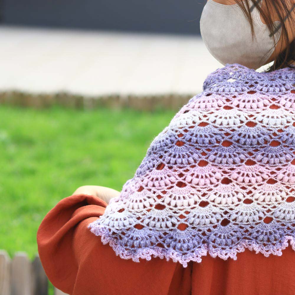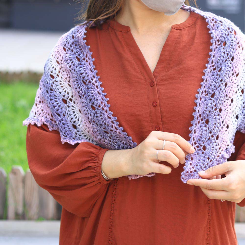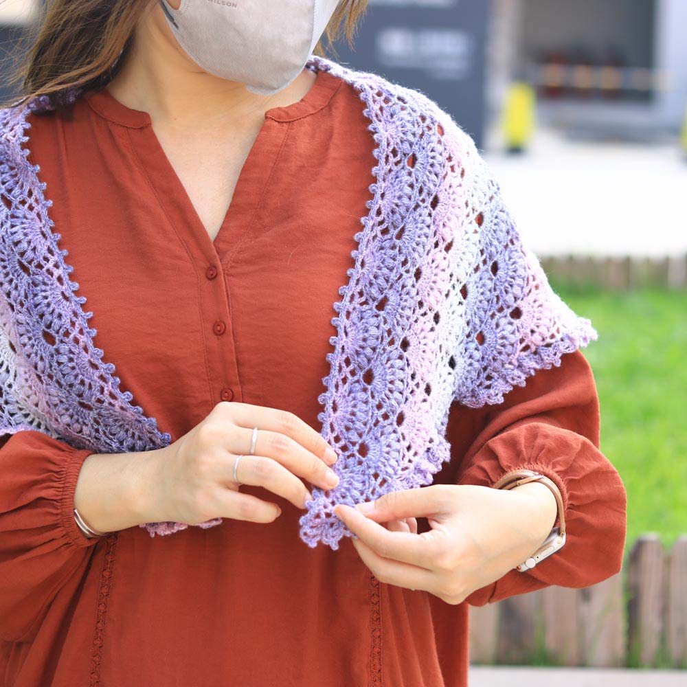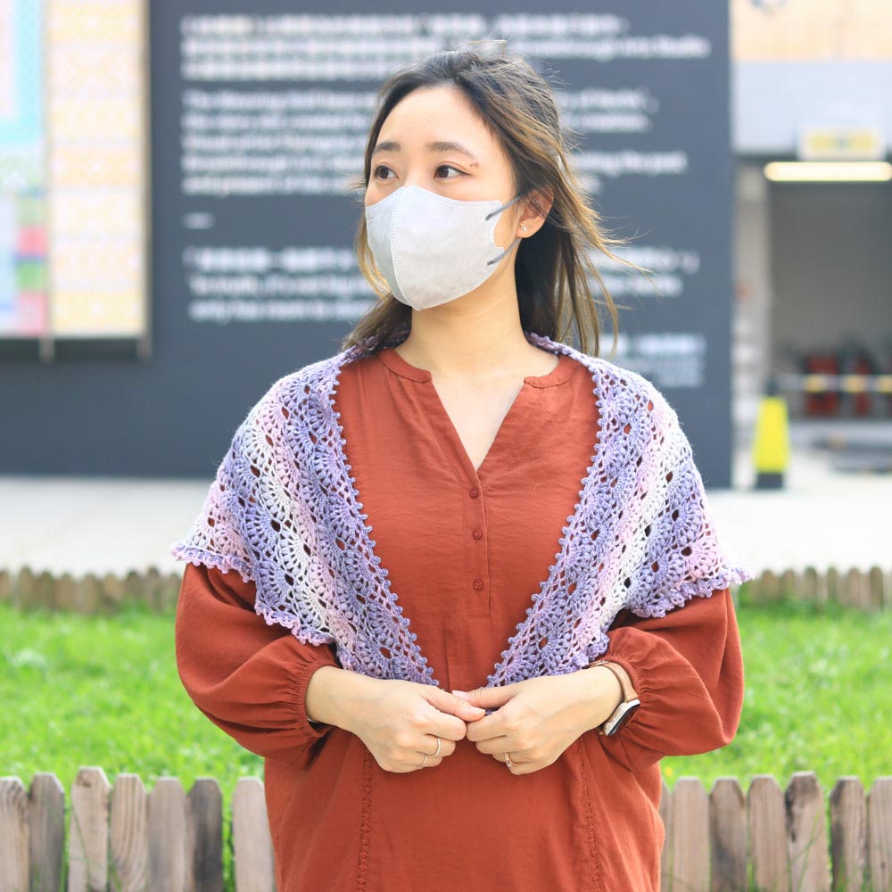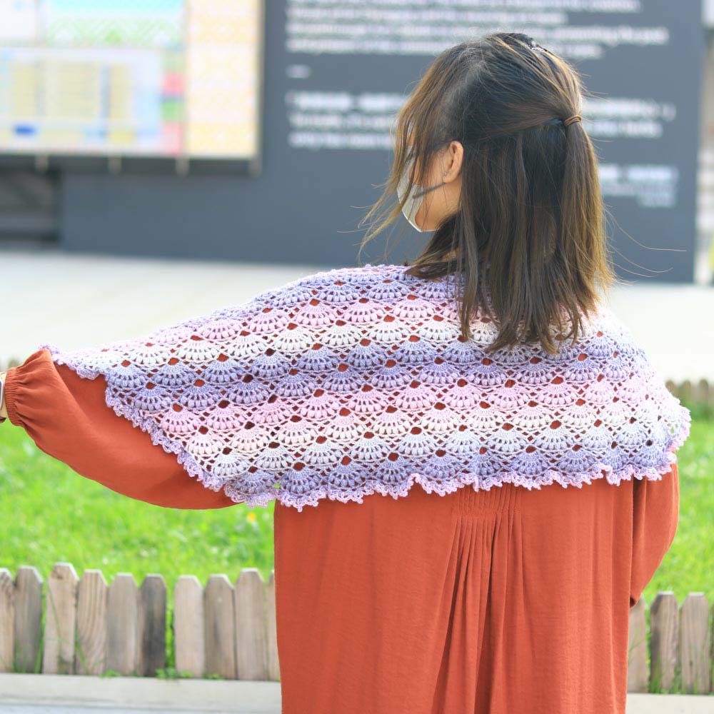 版型偏短小,大概只覆蓋三分之一背部,是很優雅的款式,想像一下襯搭漂亮的長裙,肯定非常完美。唧唧最喜歡邊沿的設計,除了結粒針還有隱約的小波浪邊,在細節增添不少韻味。