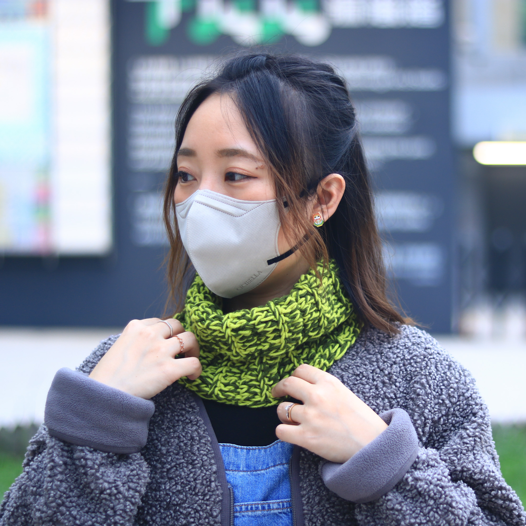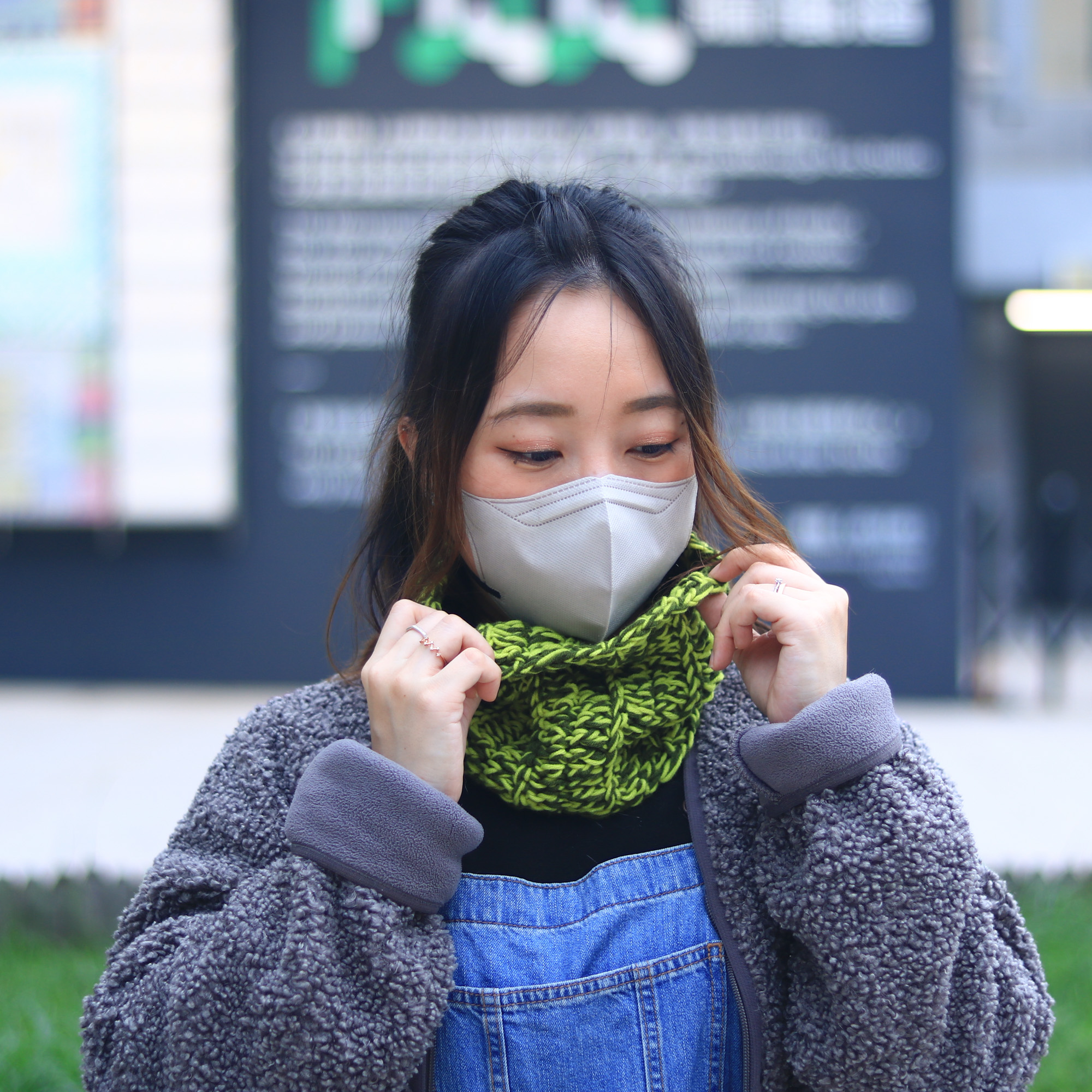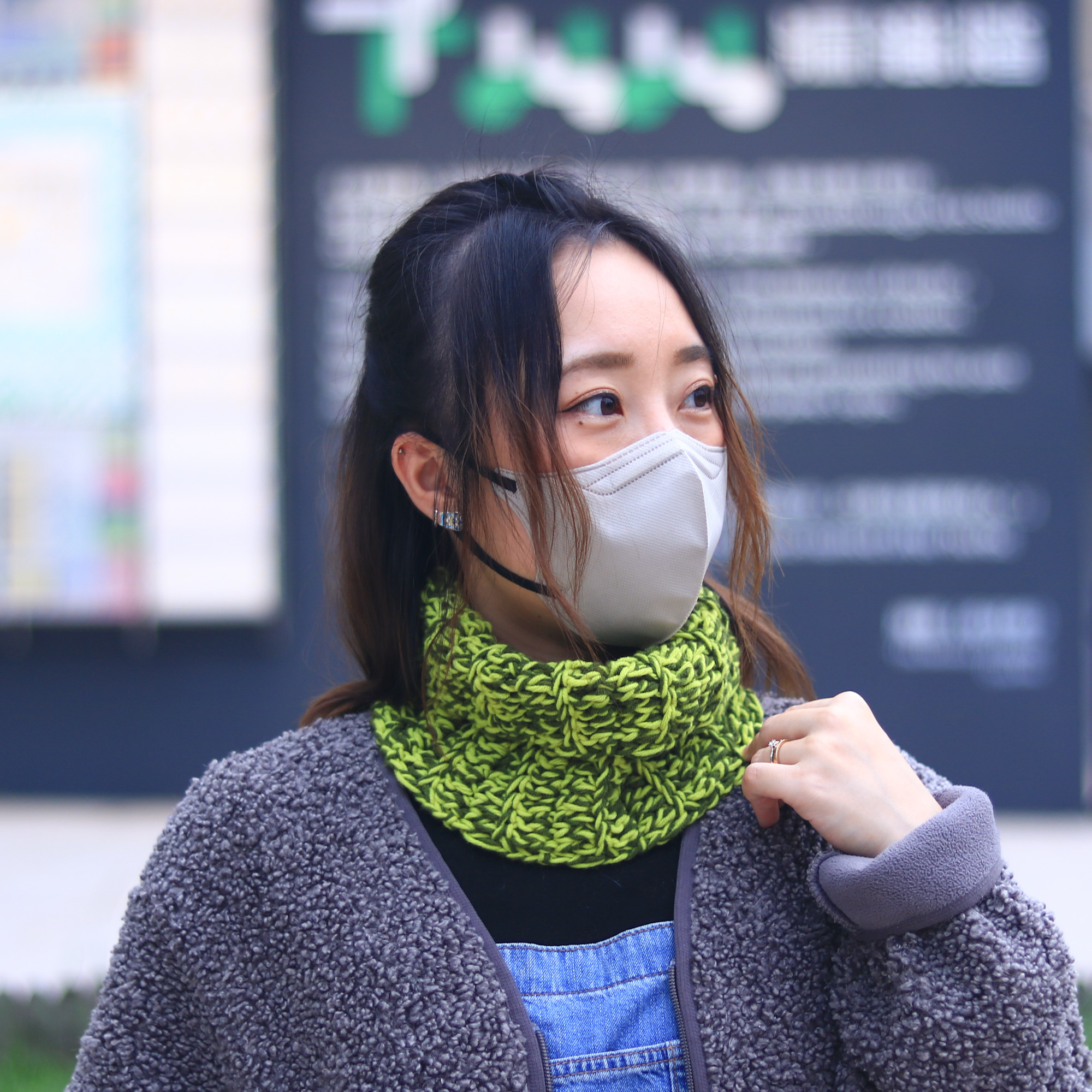不想鉤織出來的净色太過單調的話,可以嘗試用雙色鉤織喔!以全長針鉤織足夠的寬度後,再將頭尾連接便完成整個圍脖啦,是一件能夠快速完成的織品。