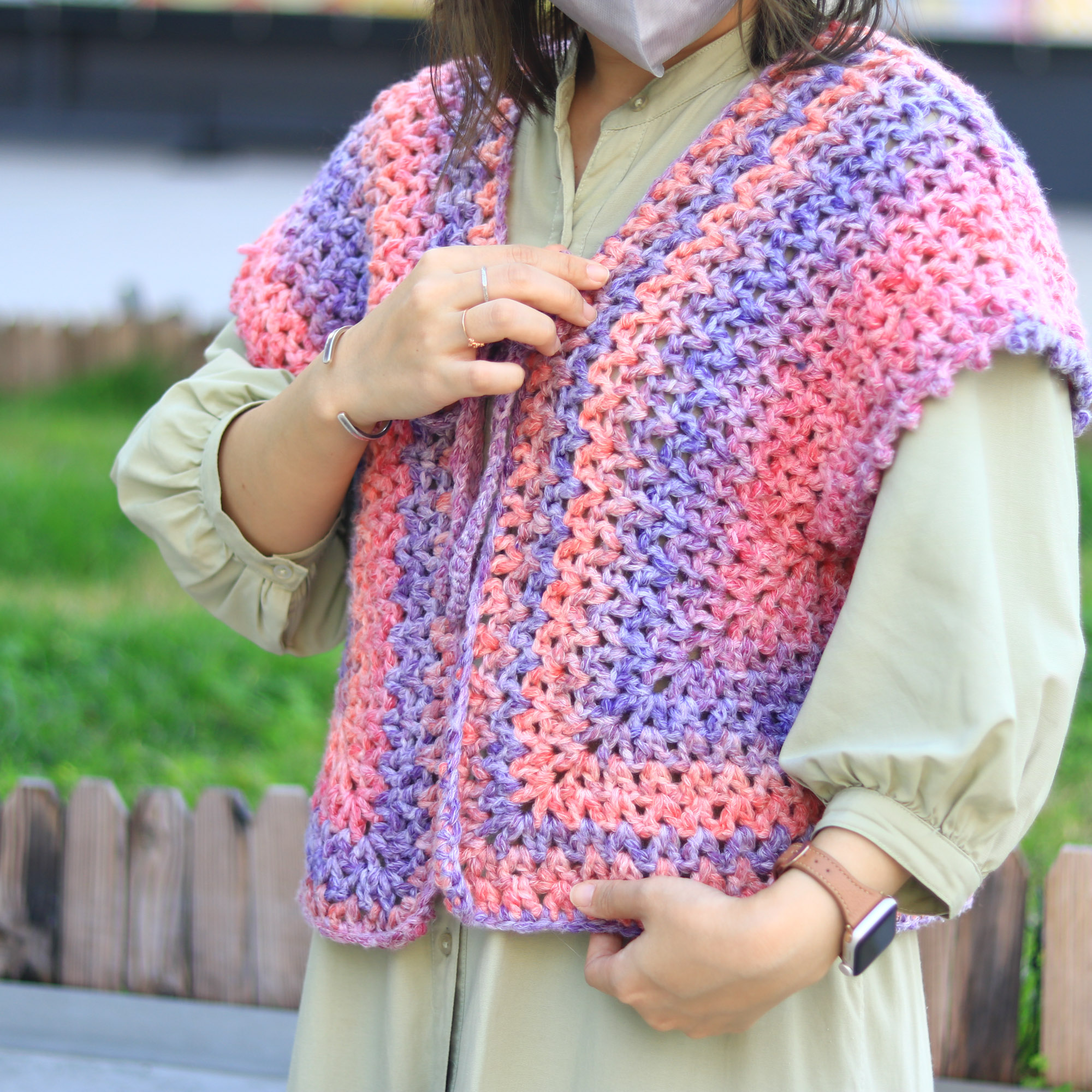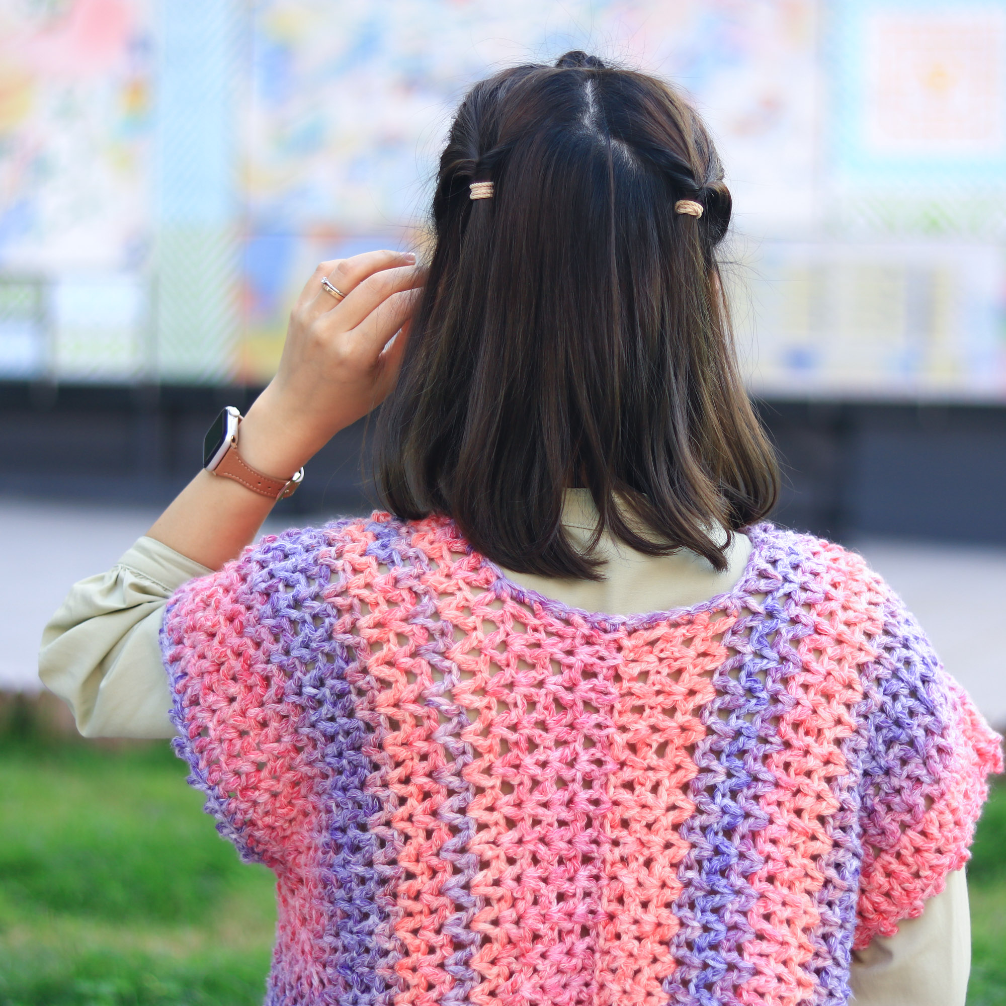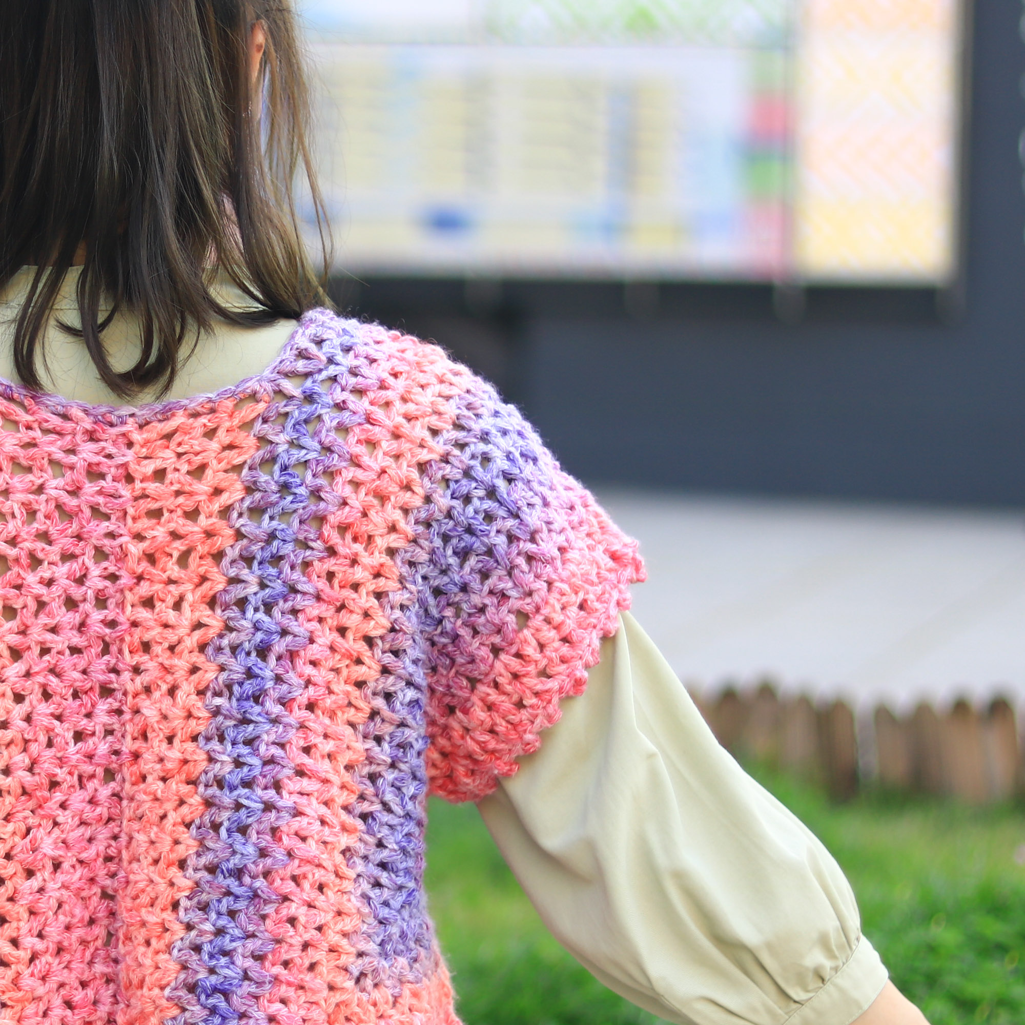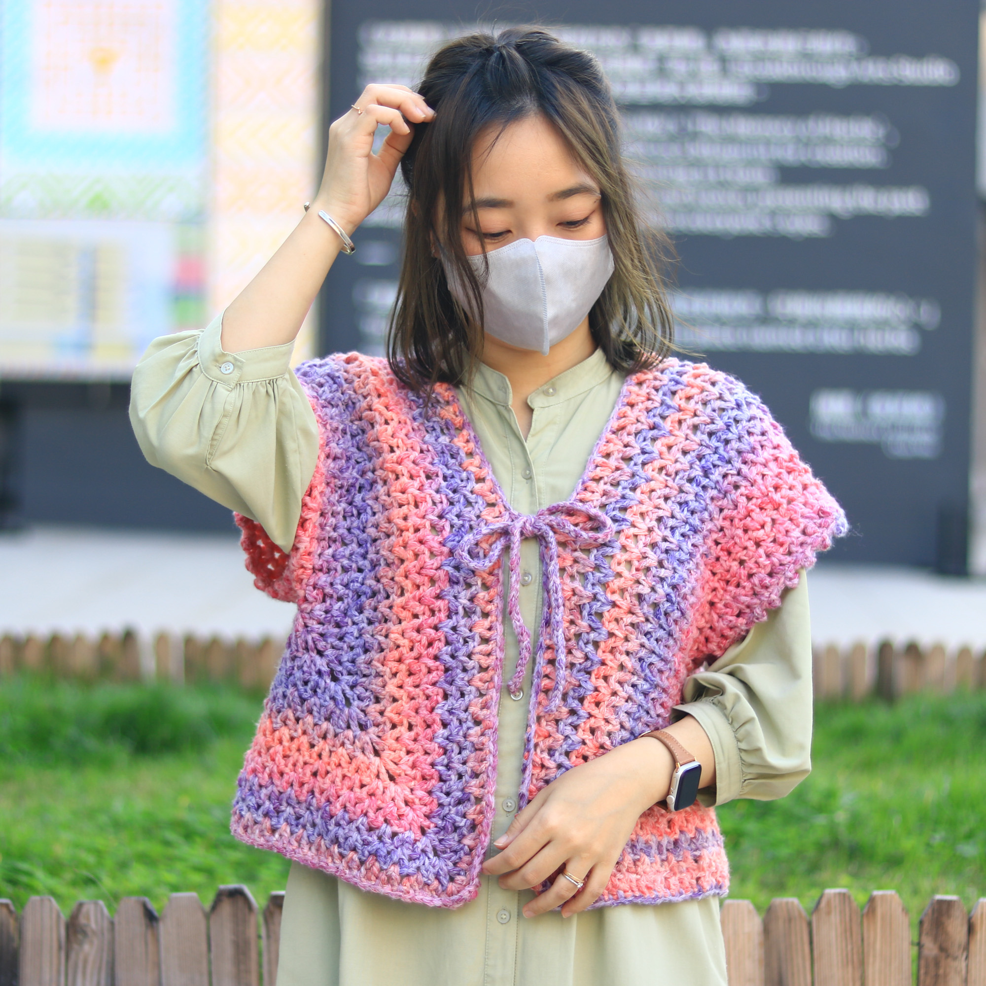 很適合秋日氣候的一件短袖外搭,裏面搭配一件薄薄的上衣相信已經能夠抵禦秋日的涼意,特意在袖口邊加上結粒圍邊,添上幾分俏皮可愛。