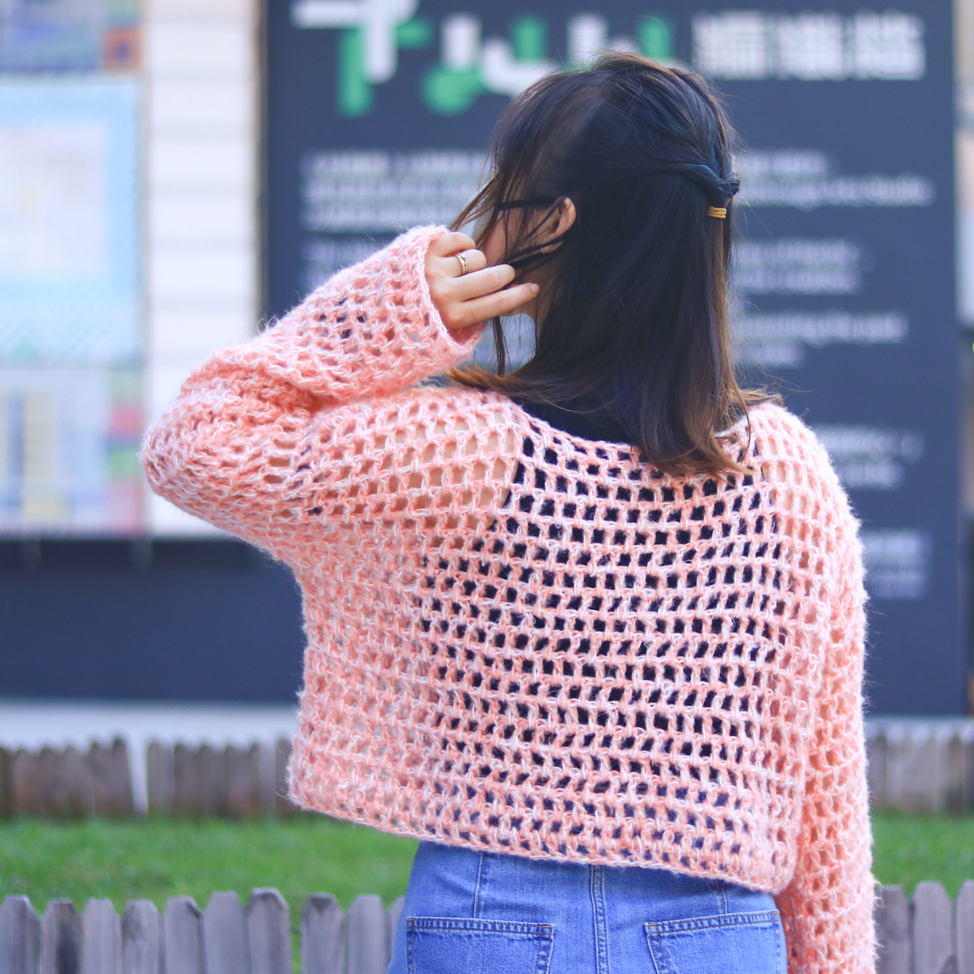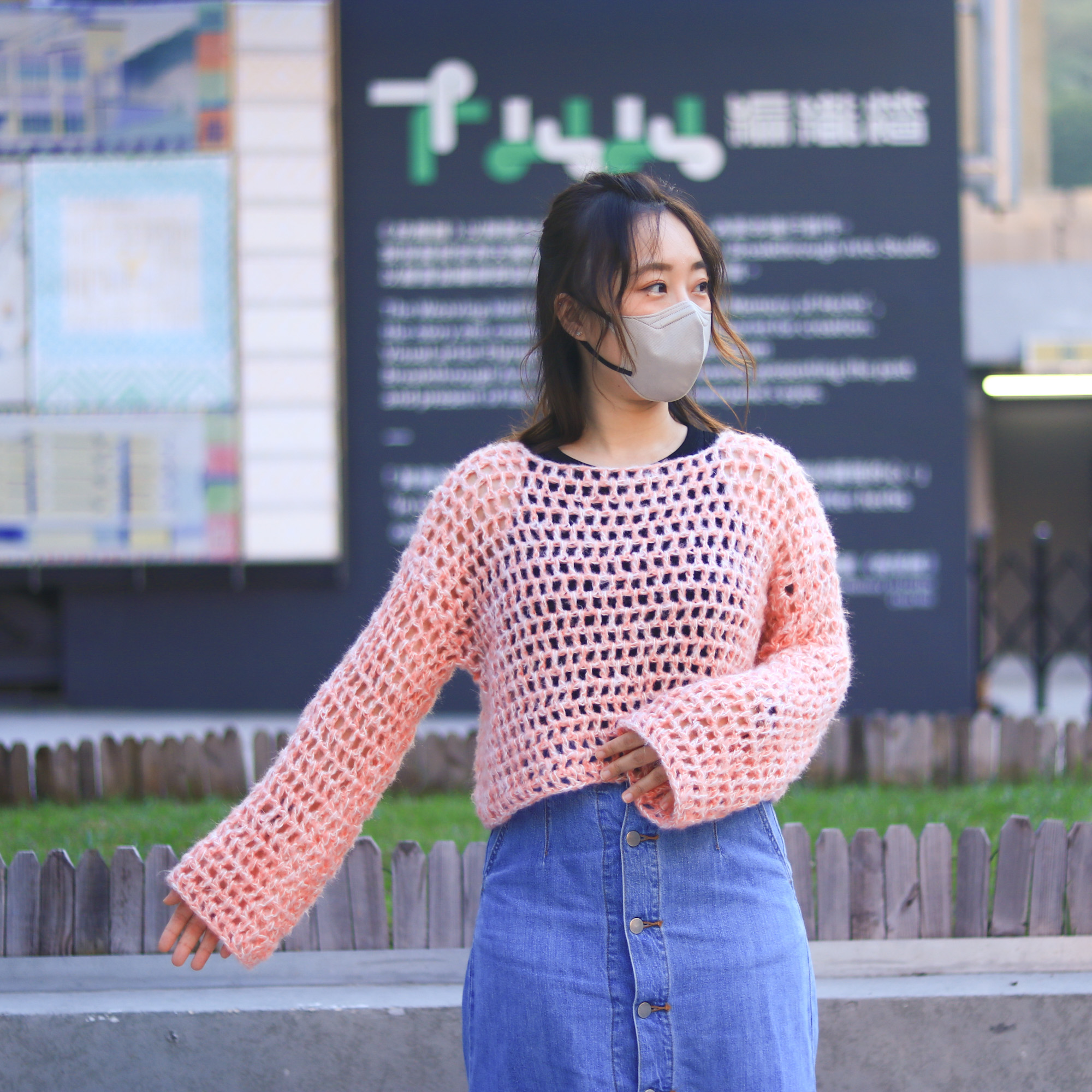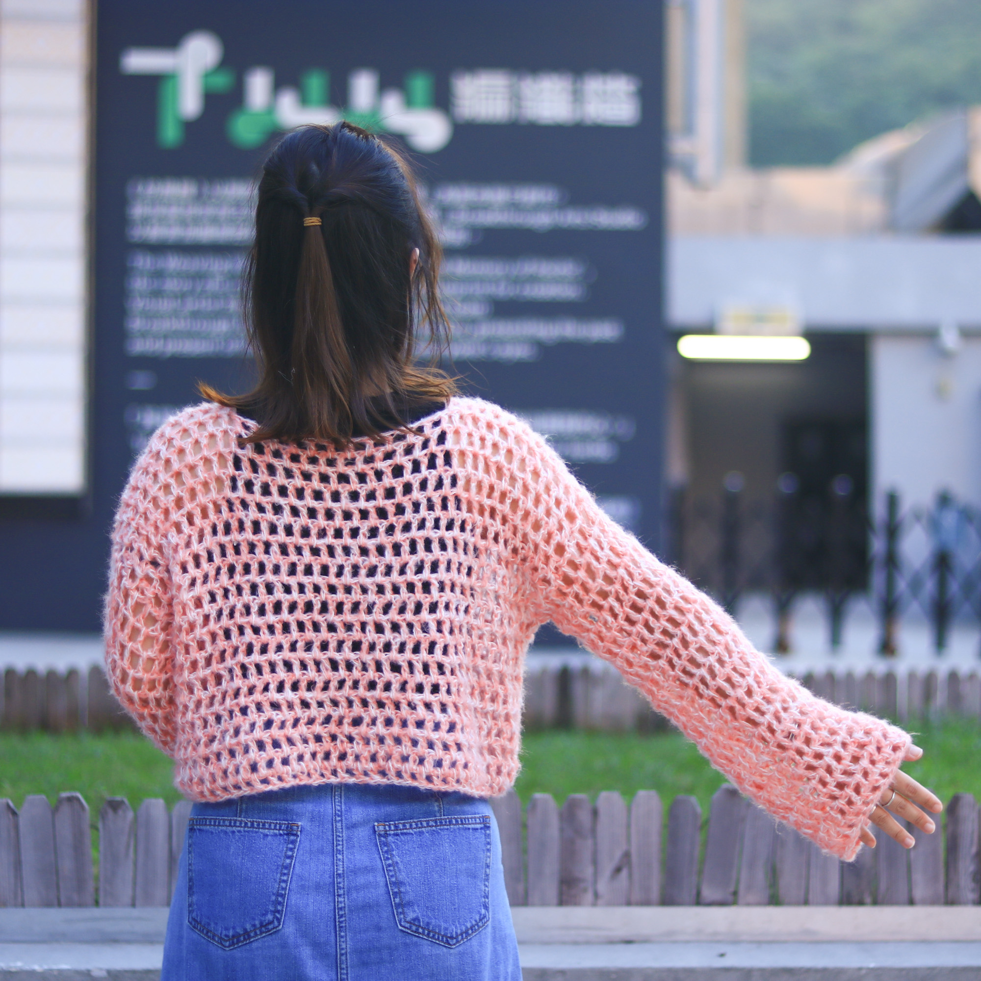 近年十分流行的網格上衣,做法簡單,只需長針與鎖針,因此很容易有種一口氣鉤織完成整件上衣的衝動。搭配任何内搭都能輕鬆完美地展現它的美麗,若然外出時想不到該穿什麽好,它會是很好的救星喔。