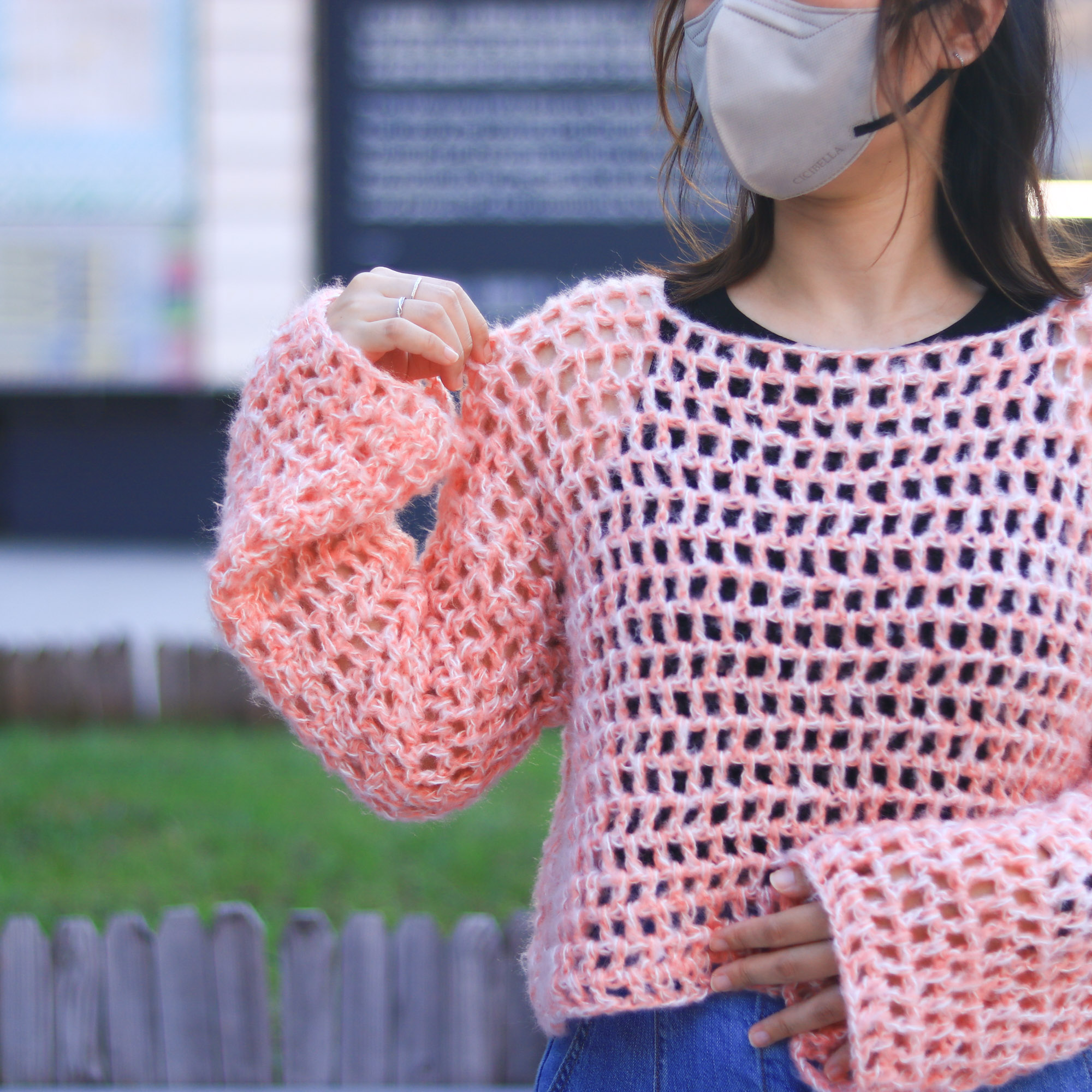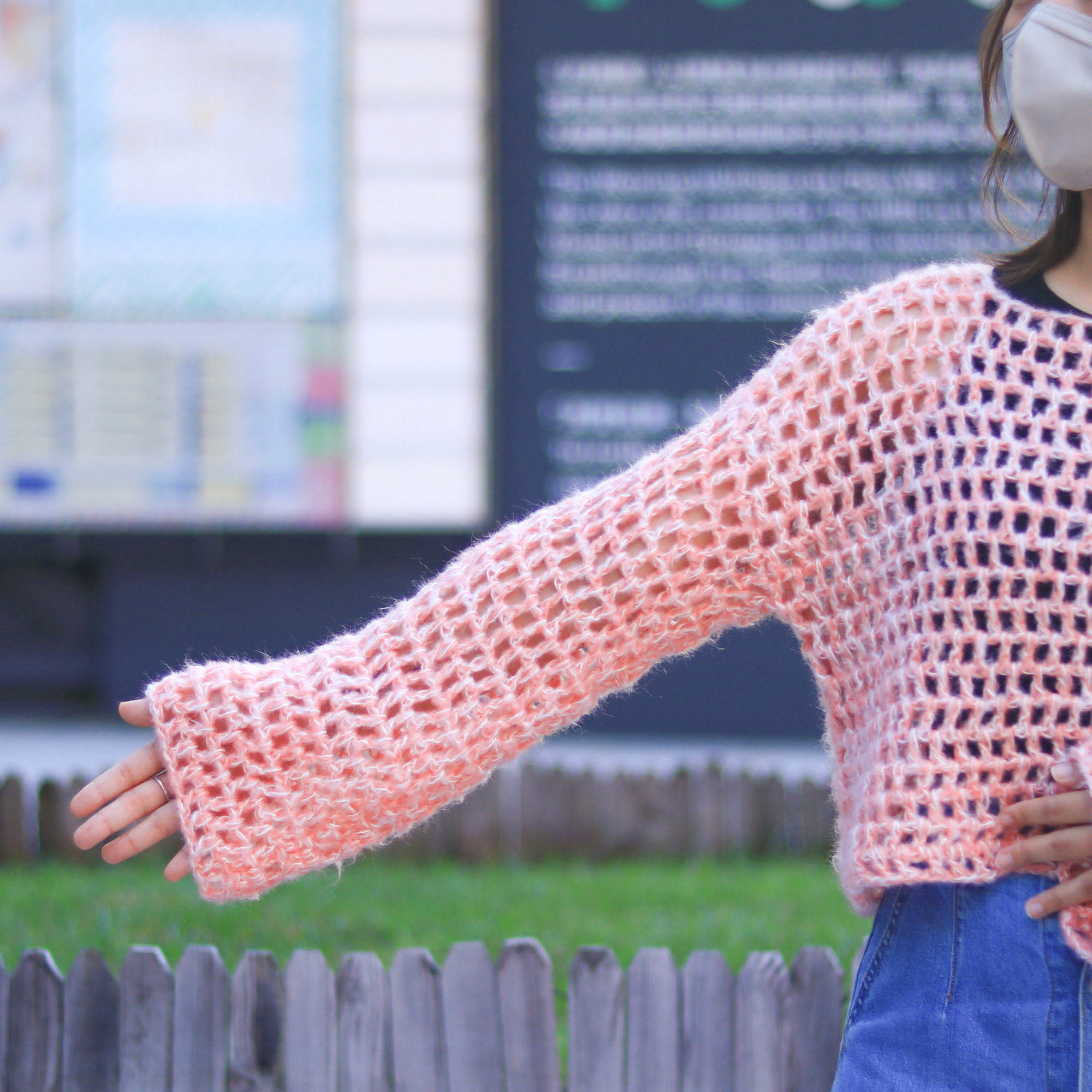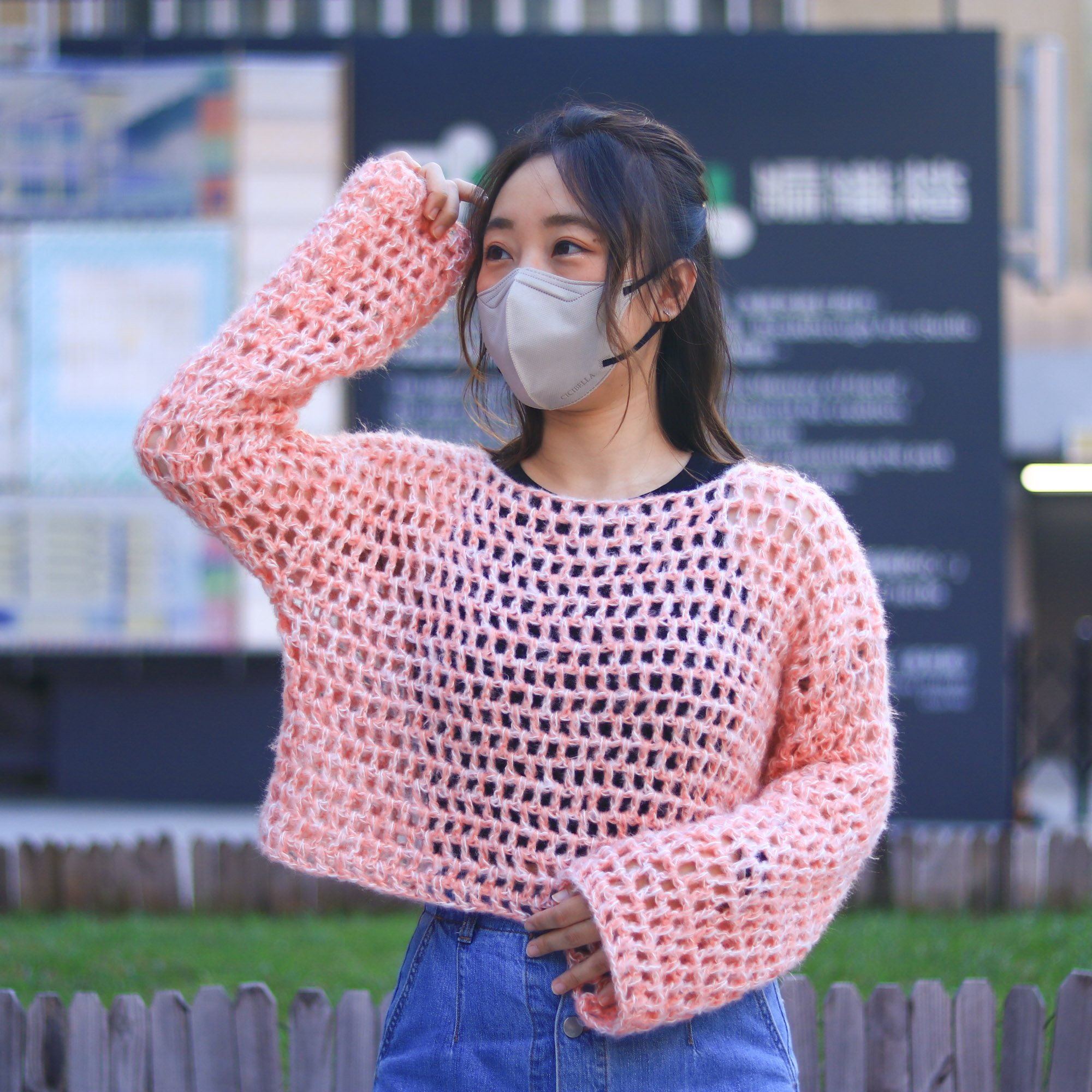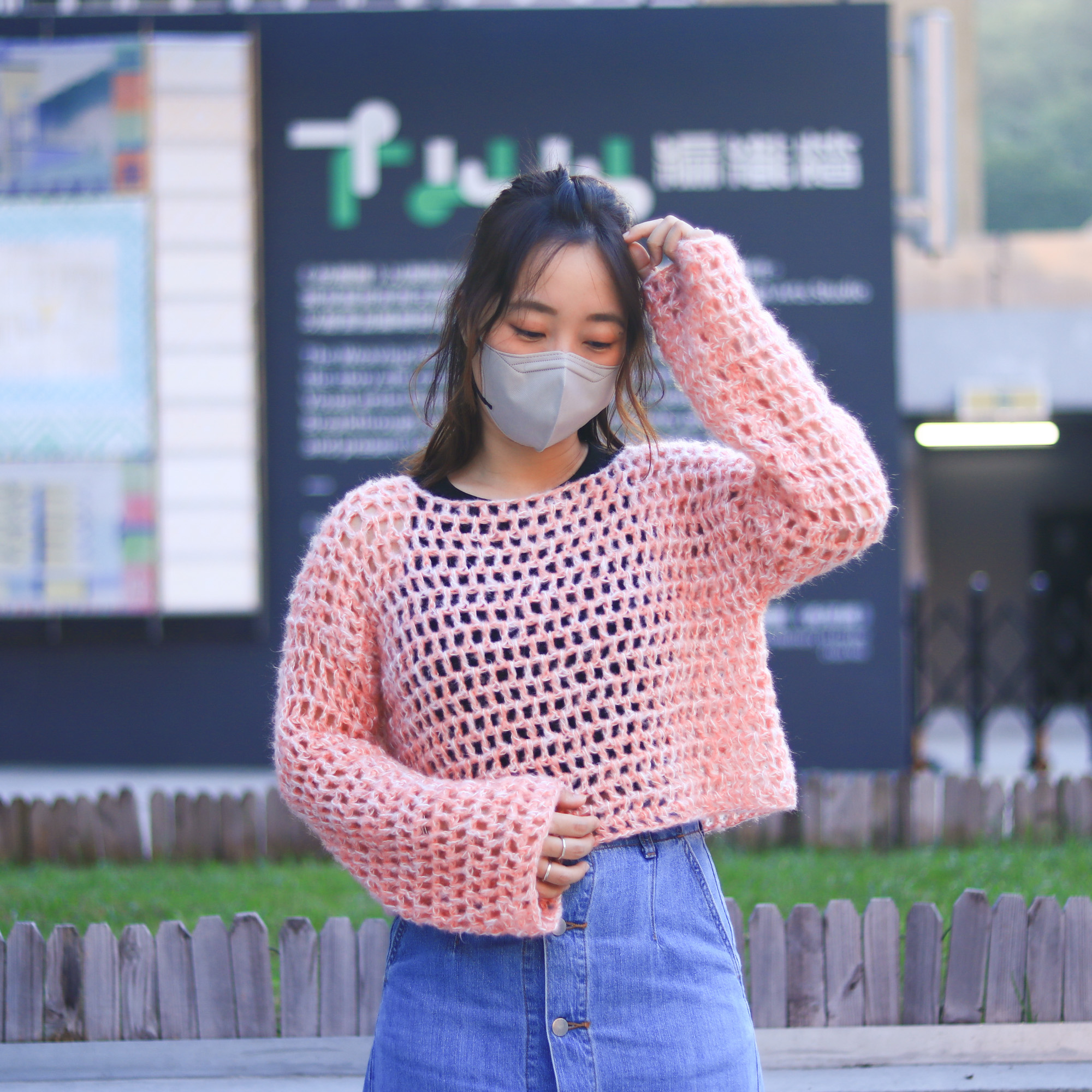 近年十分流行的網格上衣,做法簡單,只需長針與鎖針,因此很容易有種一口氣鉤織完成整件上衣的衝動。搭配任何内搭都能輕鬆完美地展現它的美麗,若然外出時想不到該穿什麽好,它會是很好的救星喔。