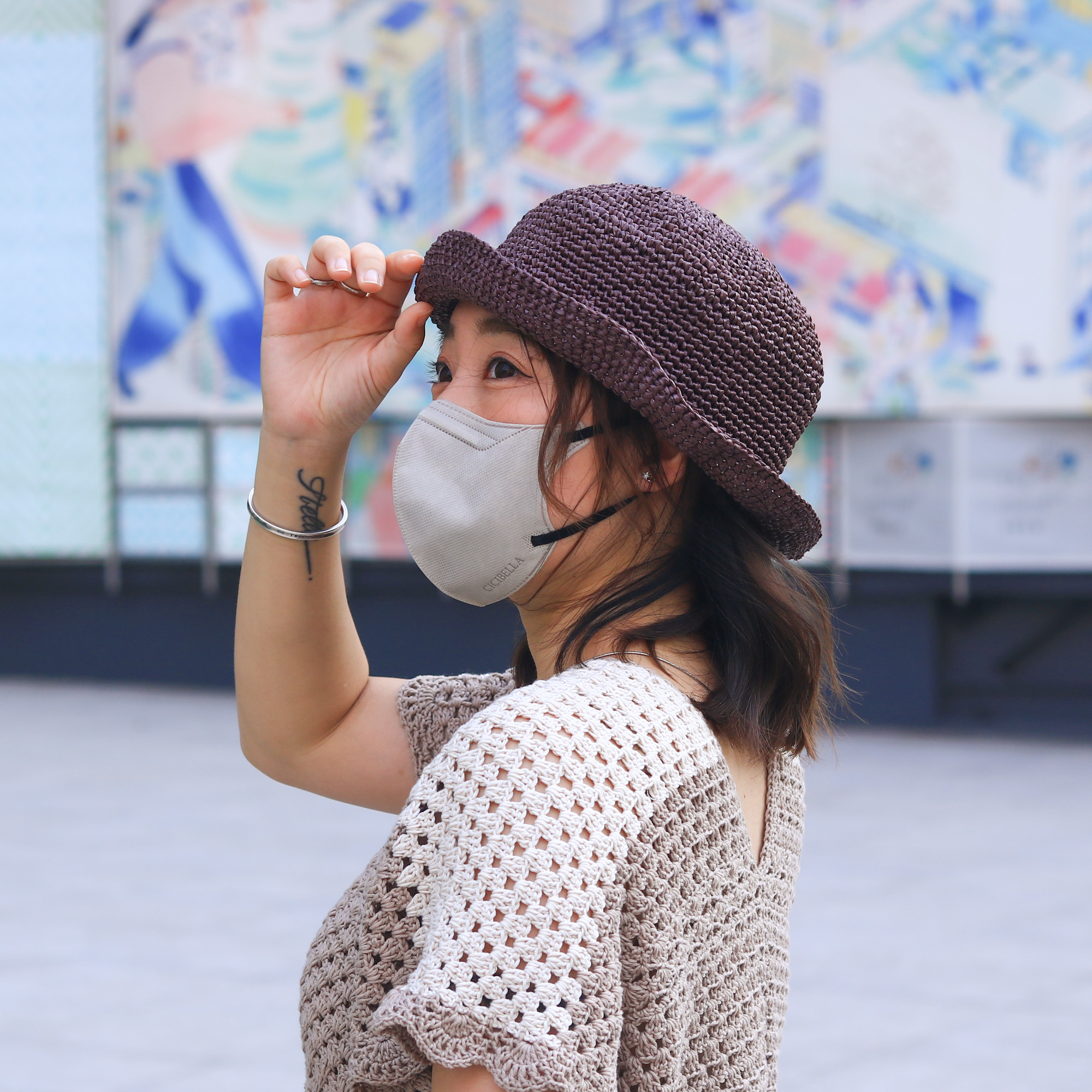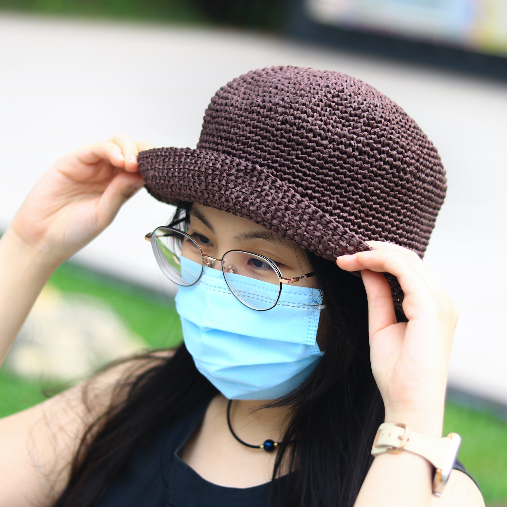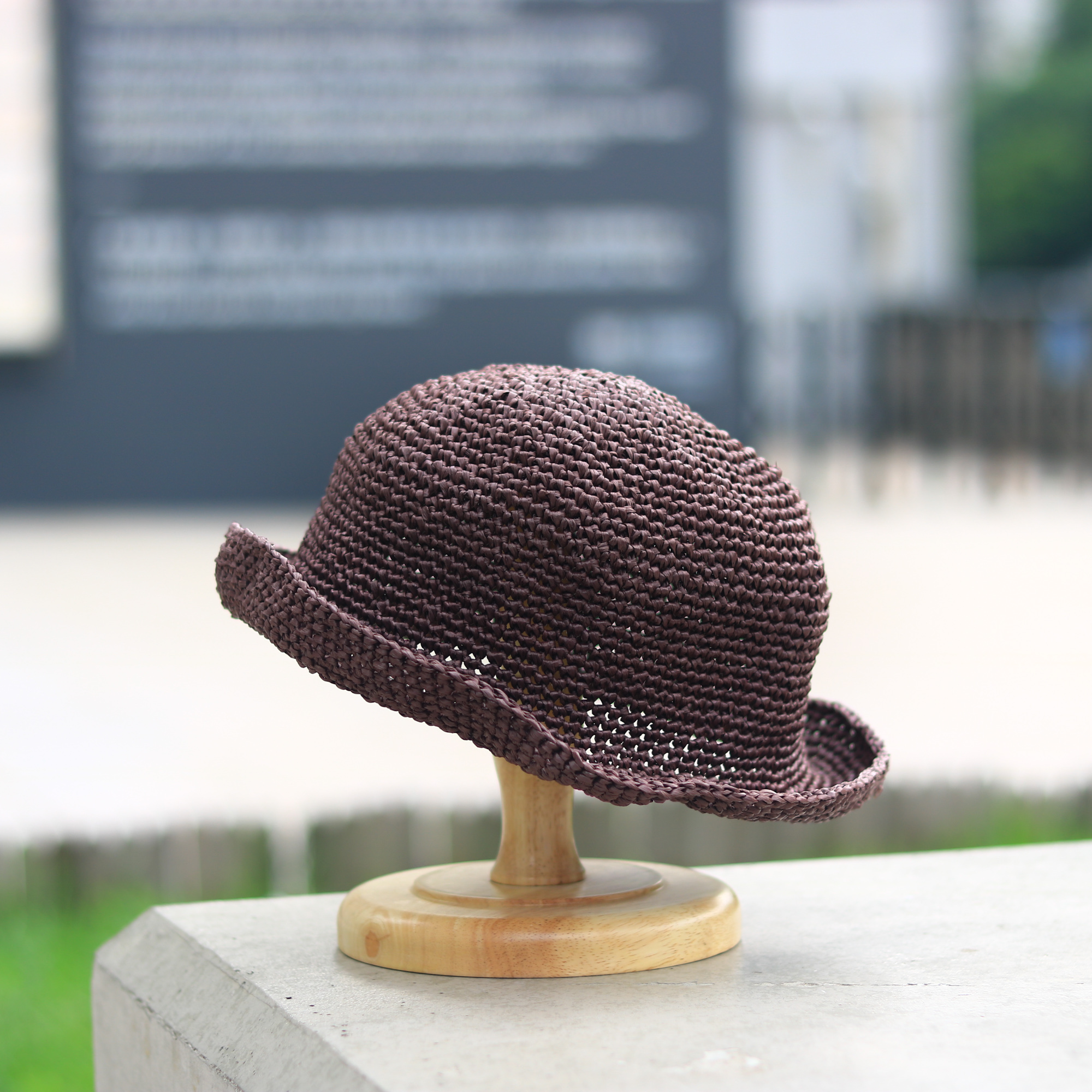 鉤織圓頂小捲邊草帽 CC003-028