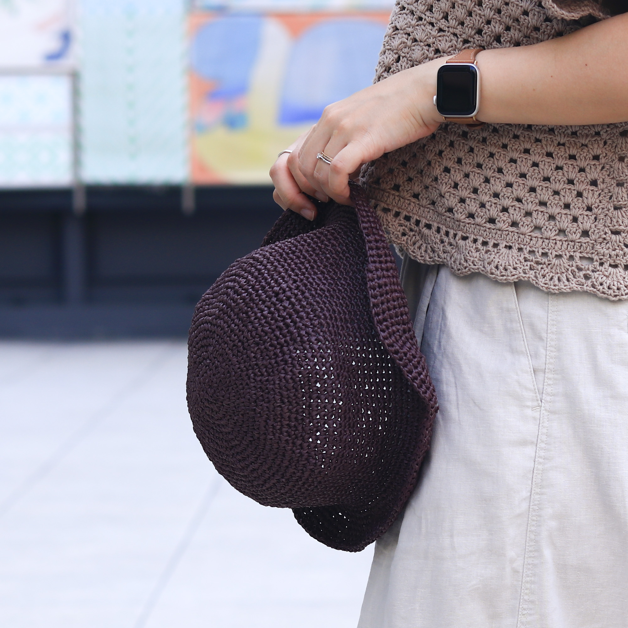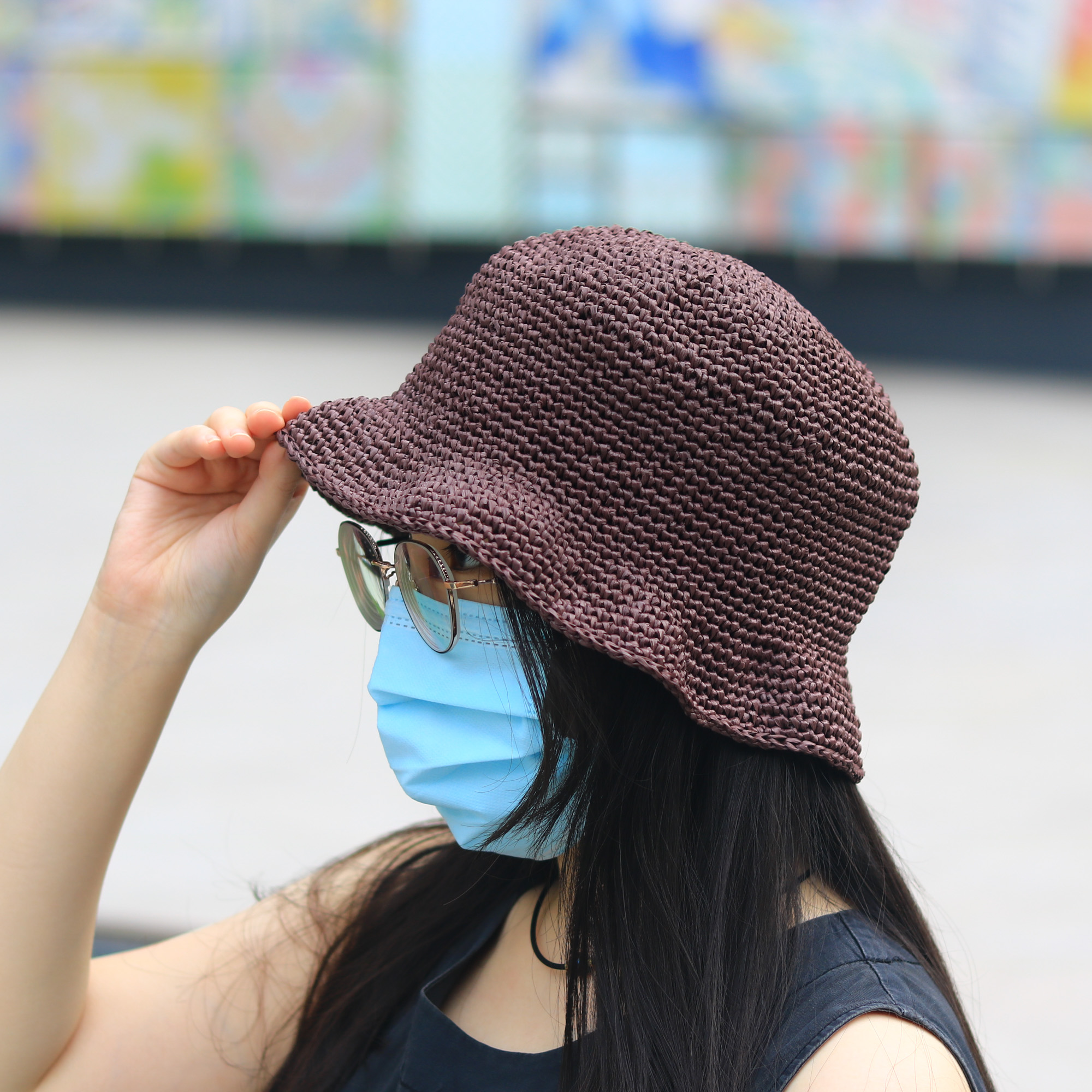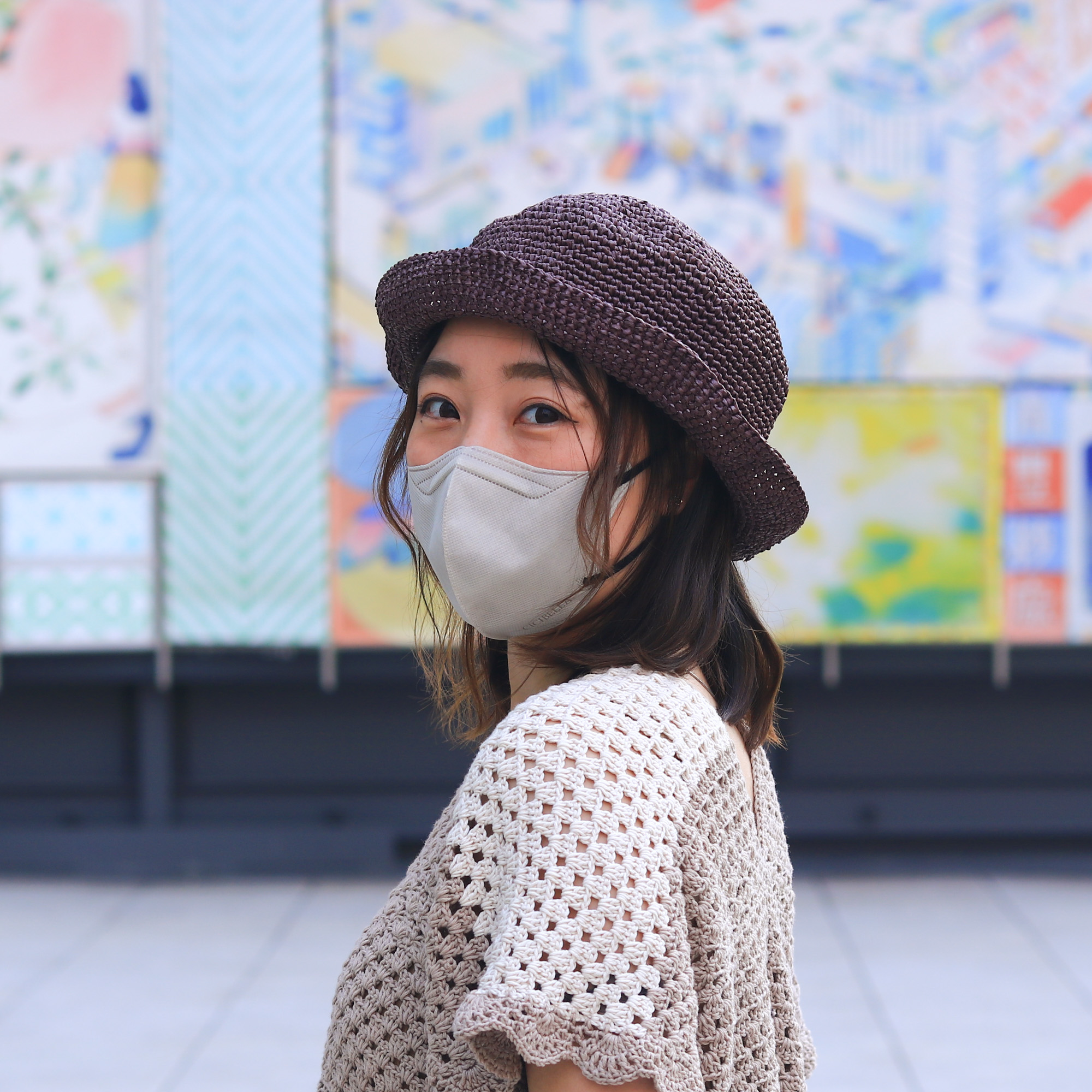 鉤織圓頂小捲邊草帽 CC003-028