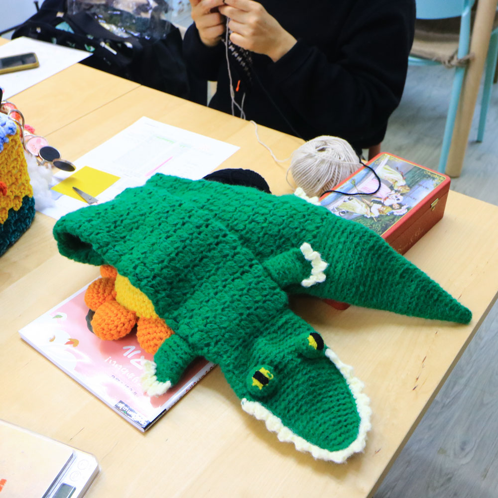 【新手首選】的深入學習鉤織定期班,一期四節課堂。老師會因應同學的能力和興趣,針對性地設計專屬課程。同學也可以自主決定學習內容,挑戰特定織品,如手袋、毛毯、玩偶等。如同學有明確目標,想以鉤織仿製某些東西,甚至是挑戰原創,都非常歡迎(具體需視乎作品難度以及同學經驗)。